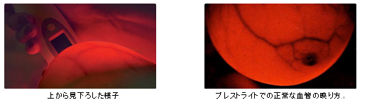 ブレストライトを使用した場合、血流の増加は、暗い影や暗い部分として映ります。